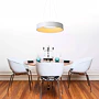 Je zavěšená na třech elegantních kabelech a vytváří tak příjemný balanc. Kruhový světelný prvek svítí integrovaným LED světlem, které lze snadno připojit k externímu stmívači. Vybrat si můžete bílé nebo černé provedení.