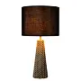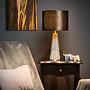 Moderní válcovité stínidlo se pyšní na unikátním podstavci, jehož tvar připomíná vázu. To, co však lampu skutečně odlišuje, je výběr materiálů a samotné provedení. Když tuhle krásku rozsvítíte, kovová krytina s tkaným vzorem doslova ožije a očaruje každou místnost.