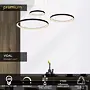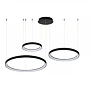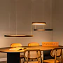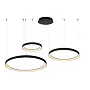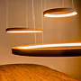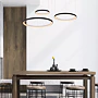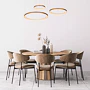 Jeho tři otevřené kruhové lustry visí z malé kulaté základny na stropě a jsou zavěšené na jemných lankách. Jako celek působí čistě a relaxačně a jeho teplé světlo vytváří ideální atmosféru u stolu. Snadno ho připojíte i k externímu stmívači a můžete si tak sami regulovat intenzitu svícení.
