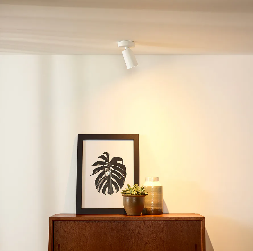 Malý bílý tubus ukrývá vyměnitelnou úspornou LED žárovku, kterou najdete v balení. Díky tomu je Xyrus všestranný a praktický. Tubus můžete kdykoliv nasměrovat libovolným směrem a zdůraznit tak detaily a zóny, které si říkají o pozornost.