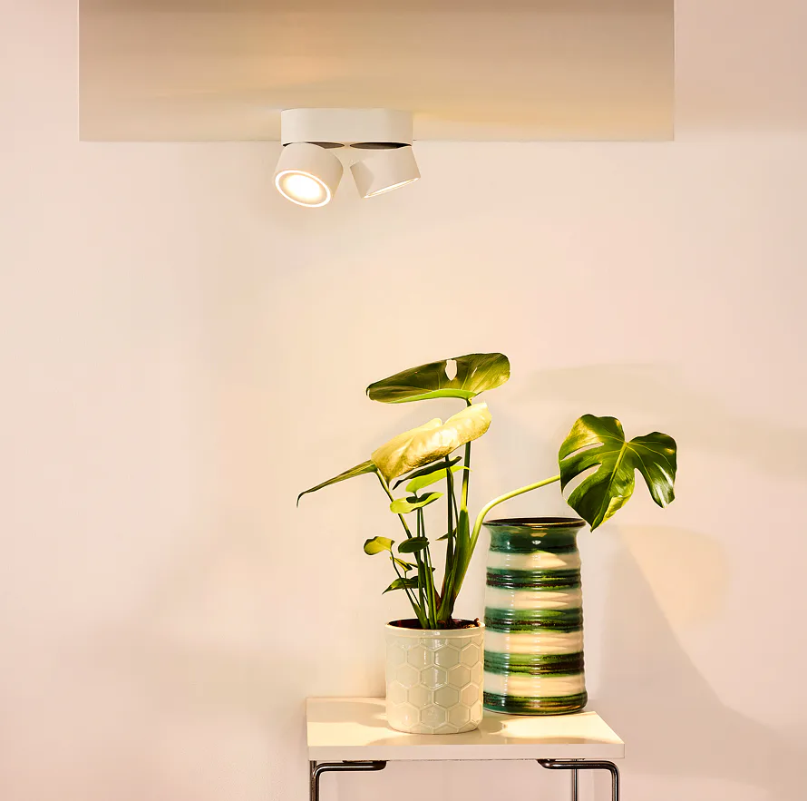 Dva kompaktní LED reflektory, umístěné vedle sebe na desce široké pouhých 16 cm, umožňují naklápění a přesné nasměrování světla tam, kam zrovna potřebujete. Když je navíc připojíte ke stmívači (není součástí balení), snadno si nastavíte i intenzitu osvětlení podle momentální nálady.