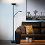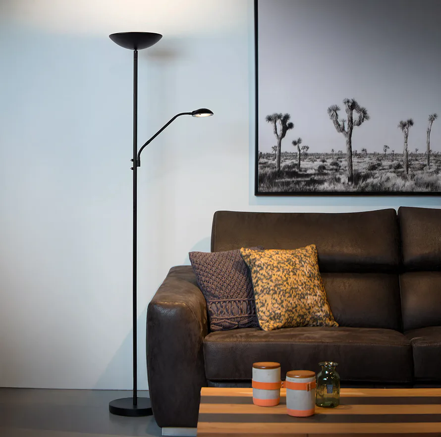 Získejte dvě lampy za cenu jedné! Tato stojací od Lucide kombinuje nastavitelnou čtecí lampu a kvalitní nepřímé osvětlení.
