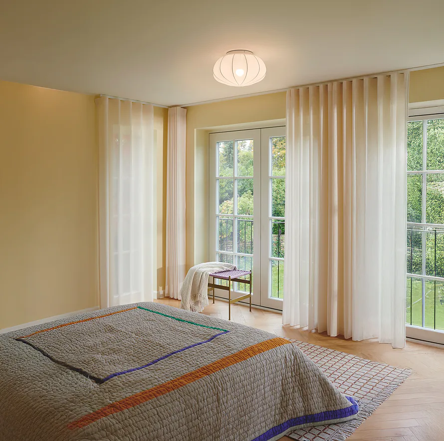 Vzdušné stropní svítidlo Aeron 40 od Nordluxu je ideálním doplňkem pro vytvoření útulné a klidné atmosféry. Díky jemné látce, natažené přes kovovou konstrukci, do místnosti vysílá tlumené světlo. Ideálně tak osvětlí například vaši ložnici. Svítidlo si navíc velmi jednoduše sami sestavíte pomocí drátů a vestavěné stahovací šňůrky.