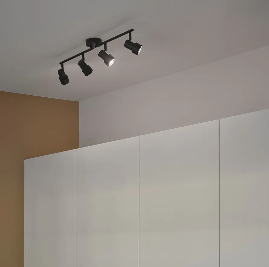Jeho otočné a naklápěcí hlavy se vám vždy přizpůsobí. Snadno si tak nasměrujete světlo přesně tam, kde ho potřebujete – ať už chcete osvětlit celou místnost, nebo jen zvýraznit konkrétní kout.