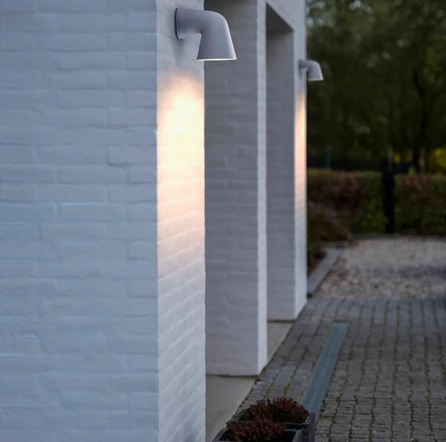 Venkovní nástěnné svítidlo Front Single od Nordluxu Vám na první pohled připomene periskop ponorky. Dílo designera Sebastiana Holmbäcka v jednoduchých, přiměřeně robustních linkách ozdobí každou moderní budovu. K dostání ve třech barevných provedeních.