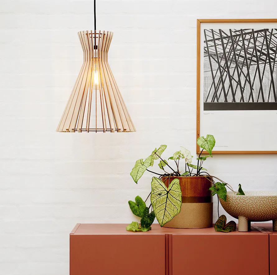 Dáváte přednost přírodním materiálům před chladným kovem? Pak je novinka Groa 34 to pravé pro Vás. Závěsná lampa od Nordluxu bude ozdobou Vašeho domova díky designovému stínidlu z dřevěných lamel. Ty vykreslí v prostoru jedinečnou hru světla a stínu, jejíž intenzitu můžete ovlivnit Vámi zvolenou žárovkou. Celkový dojem ještě pozvednete použitím některé z našich designových žárovek. Vyberete si přírodní dřevěnou varinantu nebo barvenou černou?