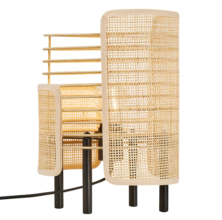 Série Jaffna rafinovaně kombinuje ratanové panely, které jsou asymetricky umístěné na konstrukci stolní lampičky. Skrz panely prochází teplé útulné světlo, které oceníte třeba v obývacím pokoji.