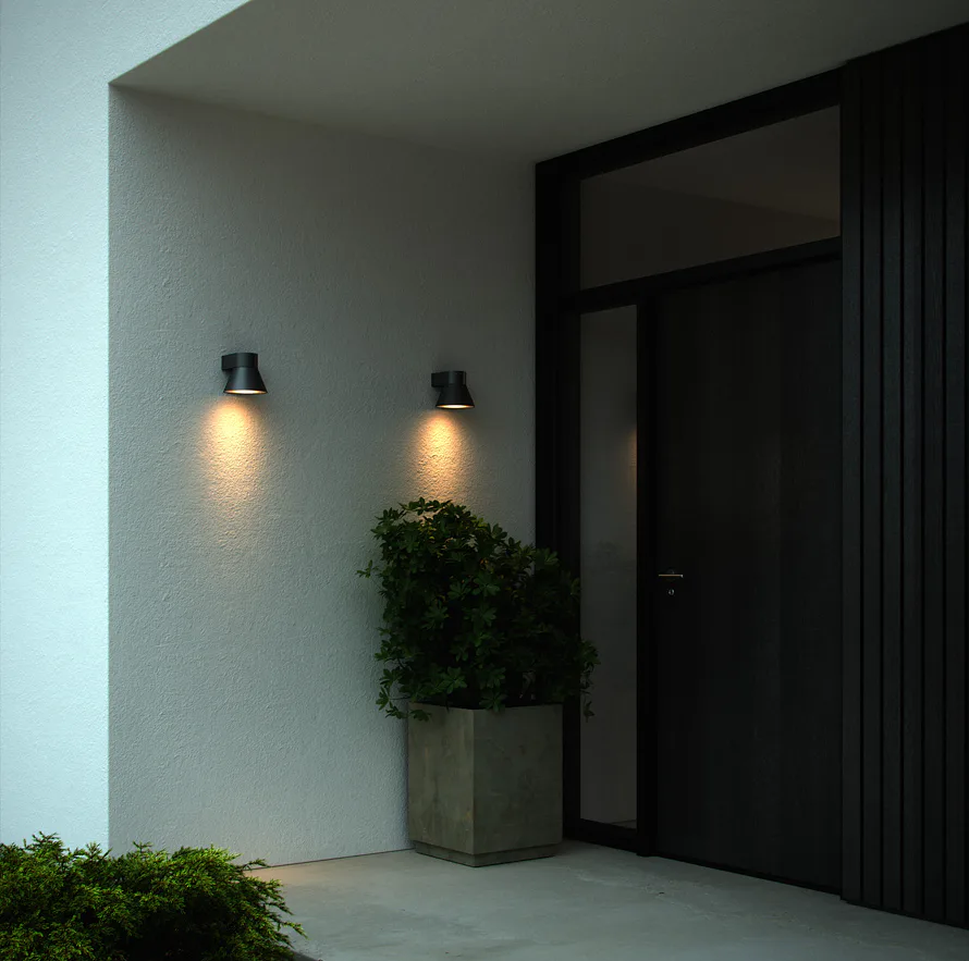 Kyklop Cone je moderní elegantní venkovní nástěnné svítidlo navržené dánským designérským duem Says Who. Stínidlo v kónickém tvaru osvětluje okolní stěny směrem dolů, sluší mu to samostatně i ve skupině světel. Světlo umožňuje paralelní zapojení, dostupné je v černé a rezavé barevné variantě.