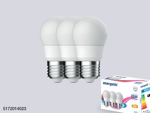 LED žárovka pro svítidla se závitem E27 v balení 3 kusů.