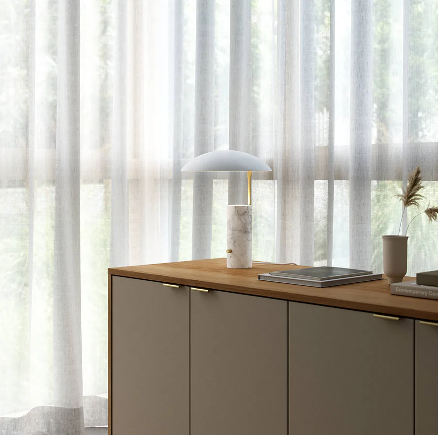 Stolní lampička Mademoiselles v italském stylu bude ozdobou každého interiéru. Velké kulaté stínítko je vyváženo masivní mramorovou základnou a společně tak tvoří lehký designový výraz. Světlo se odráží od stínítka a vyzařuje tak měkké nepřímé osvětlení, takže se skvěle hodí na dotvoření klidné atmosféry. Vybírat můžete z černé nebo bílé základny.