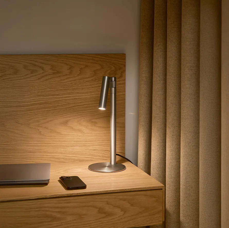 Nastavitelná hlava lampy poskytuje flexibilní a směrovatelné světlo, díky čemuž je Makoto ideální pro čtení i práci.
