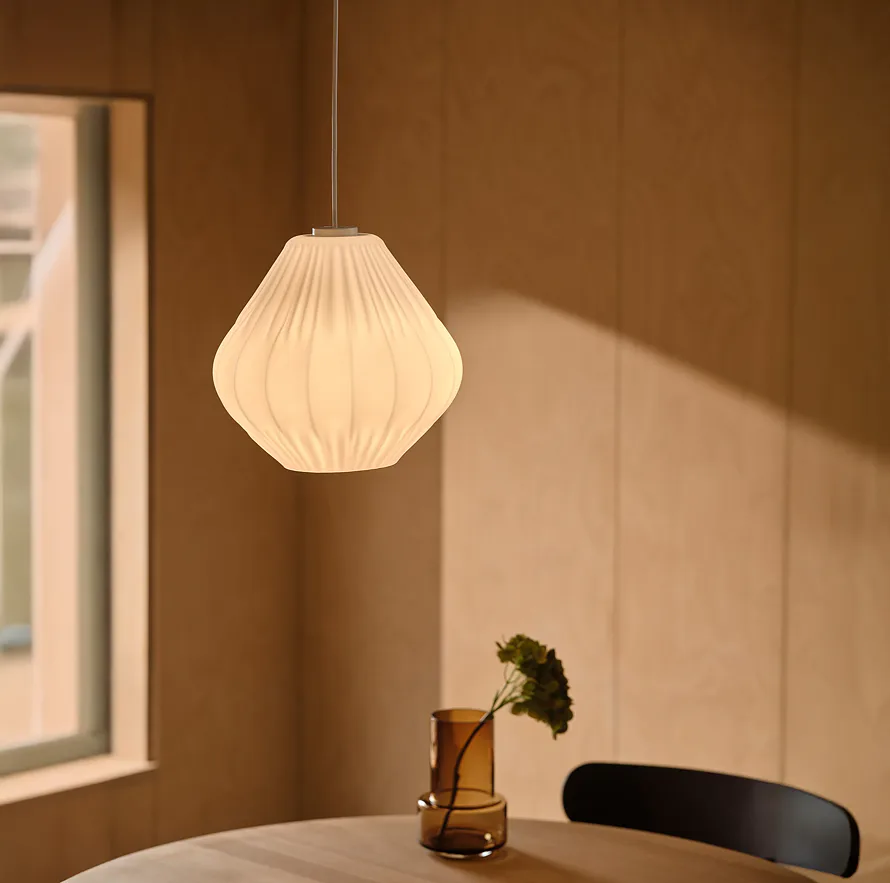 Stínidlo z matného opálového skla poskytuje jemné, rozptýlené světlo, které vytváří hřejivou a příjemnou atmosféru.
