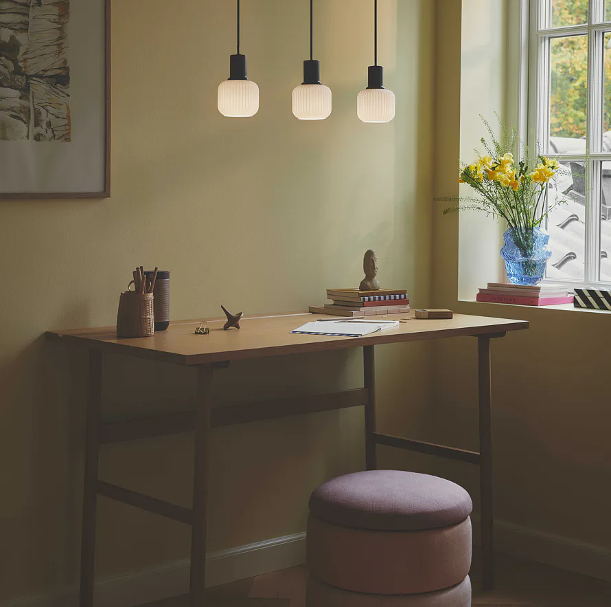 Milovali jste v dětství lampiony? Vyberte si Milford Mini od Nordluxu se 3 stínítky. Originální závěsné svítidlo z opálového skla se skládaným vzhledem v kombinaci s černým kovem dodává interiéru eleganci a osvětlí prostor měkkým světlem. Punc jedinečnosti dodá vašemu obývacímu pokoji nebo jídelně.