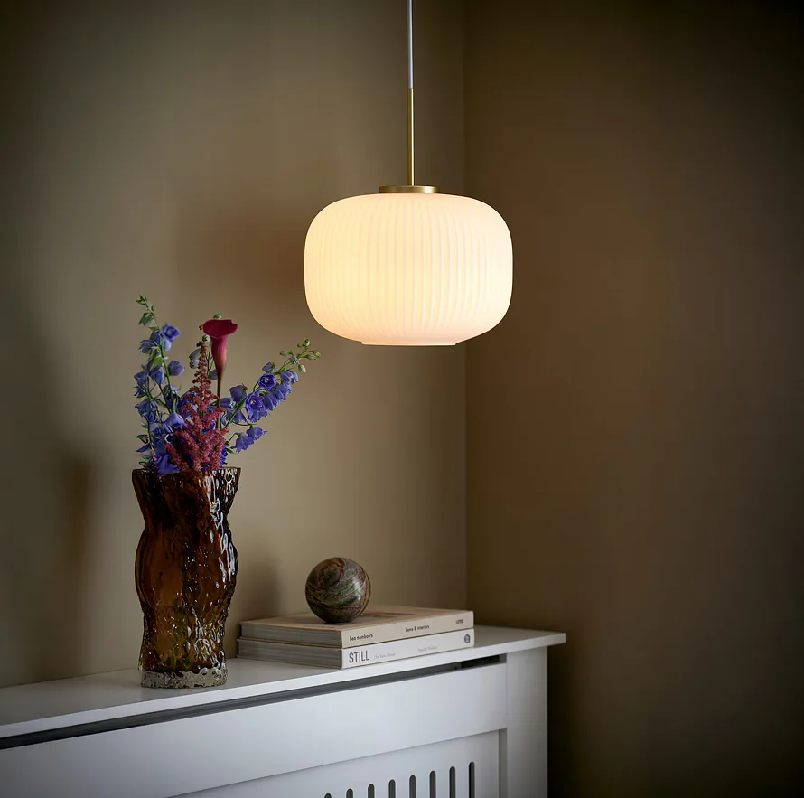 Milovali ste v detstve lampióny? Vyberte si Milford od spoločnosti Nordlux. Originálnu závesnú lampu z bieleho opálového skla so skladaným vzhľadom môžete mať v okrúhlom alebo podlhovastom vyhotovení. Vďaka mosadzným detailom dodá vašej obývačke alebo jedálni nádych jedinečnosti.