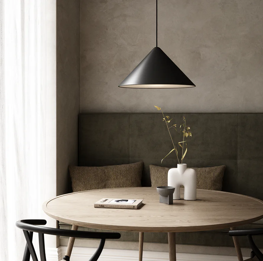 Série Nono se inspiruje v moderních geometrických tvarech. Závěsné světlo Nono 49 má jasné linie, působí nadčasově a je vyrobeno z pevných a vysoce kvalitních materiálů. Široké kuželové stínítko v matném saténovém provedení skryje žárovku a zaručí příjemné záření bez oslnění. Perfektně se bude hodit samostatně i v kombinaci více světel nad jídelní stůl, kde Vám navodí tu správnou atmosféru. Světlo je dostupné v základní bílé a černé barvě, které si vyberete?