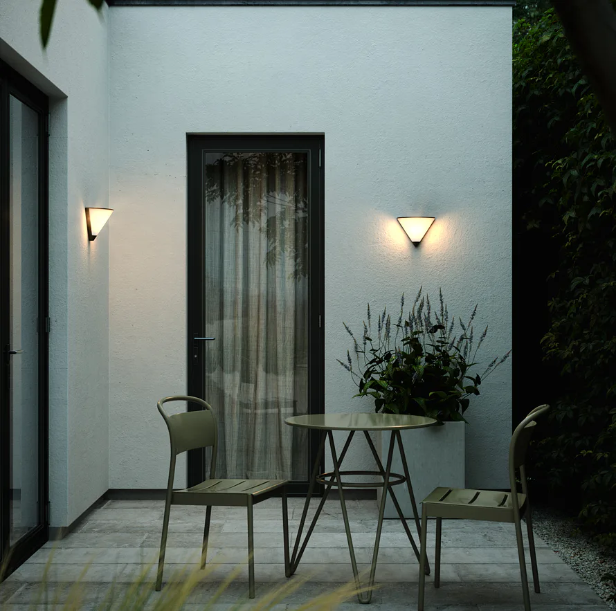 Noorstad je elegantní série venkovního osvětlení. Nástěnné svítidlo v architektonickém stylu vyzařuje příjemné světlo, které snadno osvětlí fasádu, terasu nebo garáž.