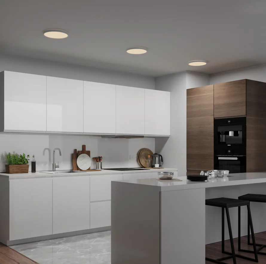 Jednoduché kruhové stropní svítidlo Oja od Nordluxu nenásilně doplní každý prostor. Třístupňový stmívač umožňuje volbu teploty světla (4000K nebo 3000K) a nebo nočního osvětlení. Světlo je vybaveno funkcí paměť a reset*.