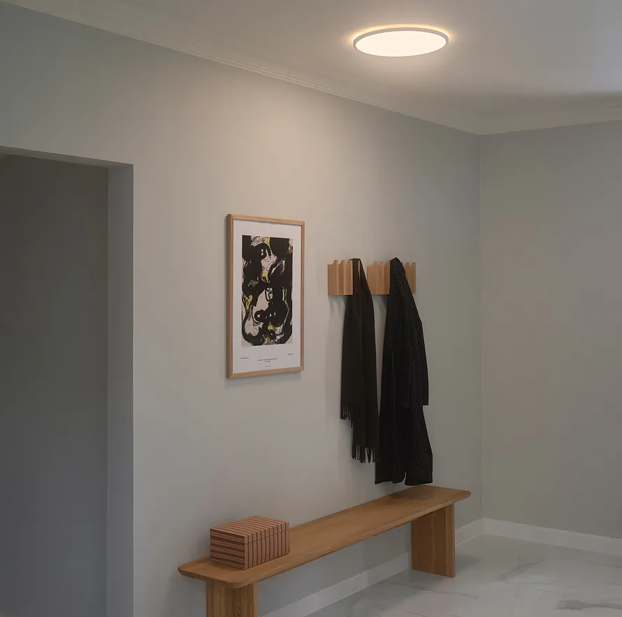 Jednoduché kruhové stropné svietidlo Oja od spoločnosti Nordlux bez problémov doplní každý priestor. Trojstupňový stmievač umožňuje zvoliť teplotu svetla (4000K alebo 3000K) alebo nočné osvetlenie. Svetlo je vybavené funkciou pamäte a resetovania*.