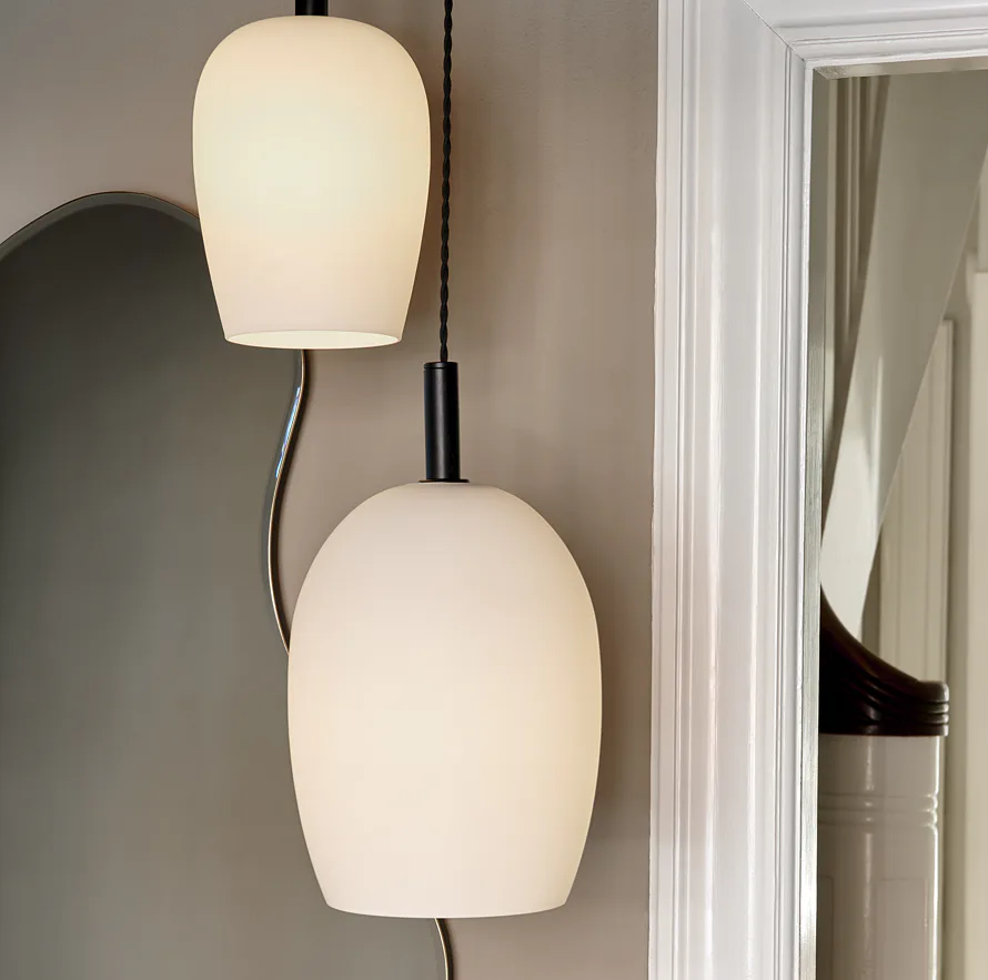 Závěsné světlo Uma 23 od Nordluxu přidává klasické lampě moderní a dekorativní nádech. Stínidlo z foukaného skla v oválném tvaru dodá každé místnosti eleganci a velmi přirozeně orámuje zdroj světla. Doporučujeme proto tento jedinečný vzhled podtrhnout některou z našich dekorativních žárovek. Varianta z opálového skla vytváří měkké a rozptýlené světlo. Blednutí u variant jantarová a kouřová podtrhuje oválný, zužující se tvar a právě v nich vynikne dekorativní žárovka.