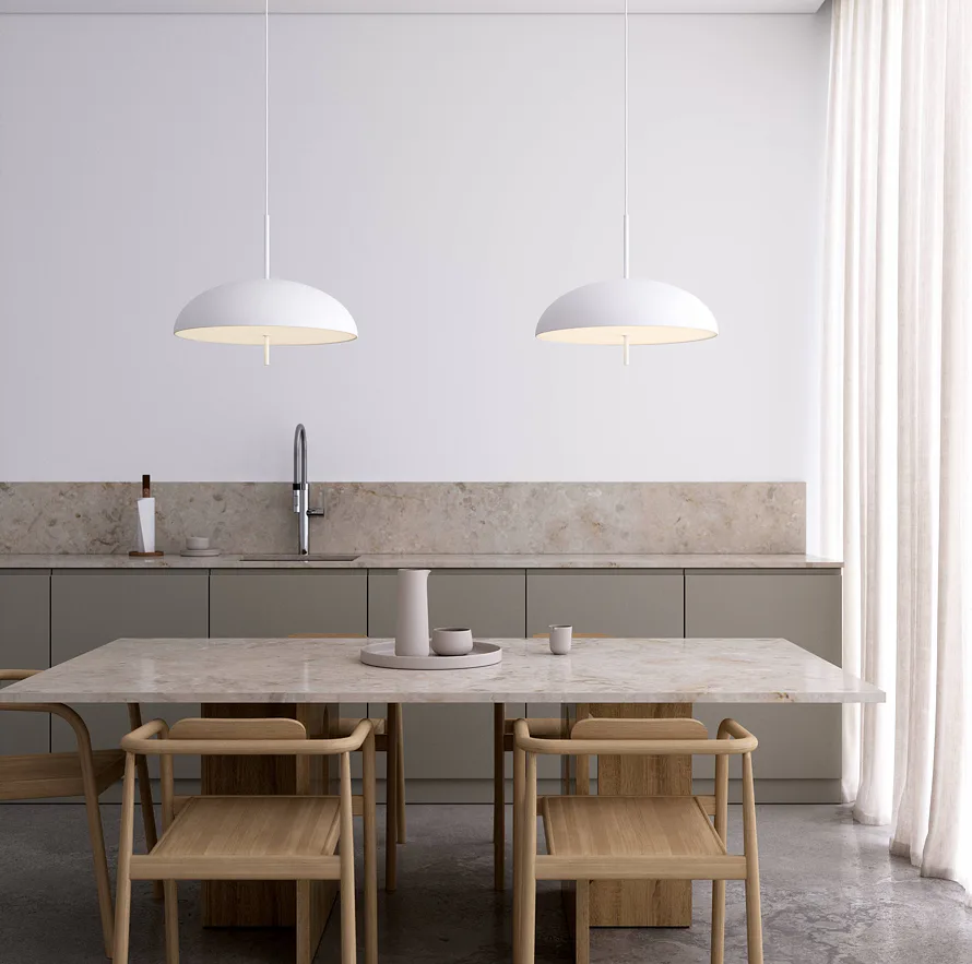 Série Versale od designerského dua Anker Studio je ztělesněním skandinávského minimalismu. Závěsné svítidlo s velkým kulatým stínítkem má dokonale jednolitý povrch ve třech barevných variantách. Světlo dokáže navodit skvělou atmosféru nad jídelním stolem, kde poskytne měkké neoslňující osvětlení prostoru.