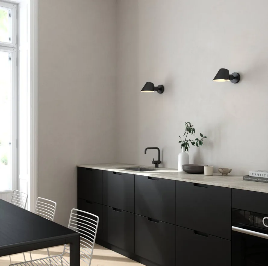 Nástenná lampa Stay Short, ktorá svieti presne na to, čo potrebujete! Nastaviteľná hlava sa dá otáčať, zatiaľ čo tienidlo svieti hore a dole a vďaka skosenému tavernovitému dizajnu prepúšťa dostatok svetla. Perfektne sa hodí ako nočná lampa.