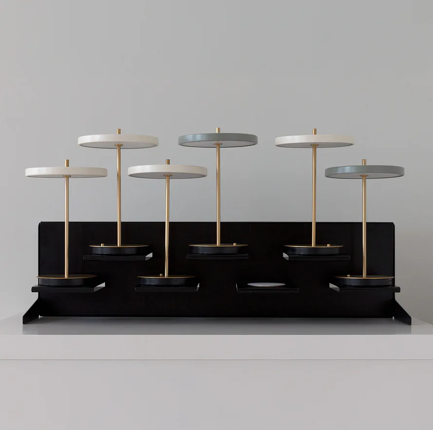 Nabíjecí stanice pro přenosné lampičky Asteria Move ocení především majitelé většího množství těchto svítidel, jako jsou například majitelé restaurací nebo kaváren. Najednou v této stanici můžete nabíjet až 7 lampiček a tím se celý proces velmi zefektivňuje. Stačí večer vložit do stanice a ráno máte nabitá svítidla připravená k použití.