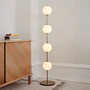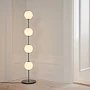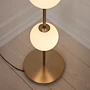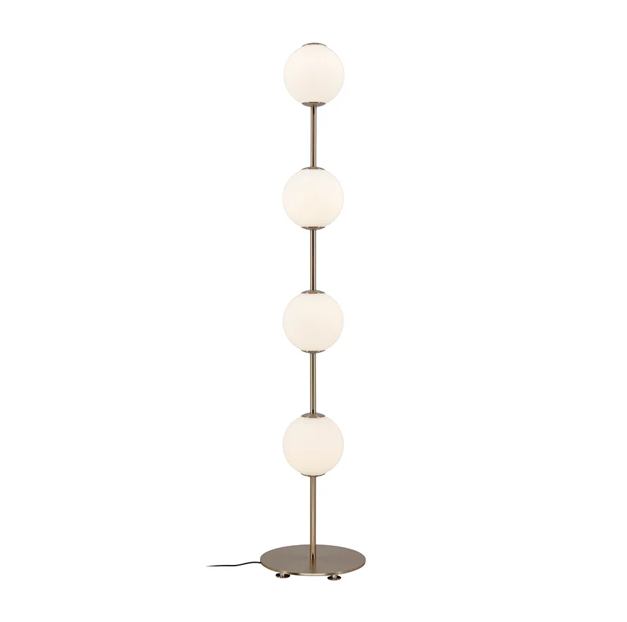 Díky mosazným prvkům a ručně foukaným koulím z opálového skla vyzařuje lampa Audrey okouzlující teplo a eleganci, připomínající zářivé perly. Jemné skleněné koule rozptylují světlo s lehkostí a vytvářejí uklidňující atmosféru.