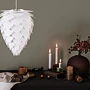 Elegantní stínítko UMAGE Conia bude jedinečnou ozdobou Vašeho interiéru. Přes den díky svému vzhledu připomínajícímu borovou šišku působí jako samostatný artefakt a po setmění ozáří Váš domov příjemným měkkým světlem. Originální kousek z dílny dánských návrhářů firmy UMAGE využijete v ložnici či obývacím pokoji, nebo ve stylové kavárně. K dostání v několika velikostech v bílé, mosazné nebo měděné barvě, je kompatibilní se závěsy a stojany řady UMAGE.
