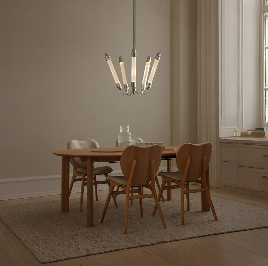 Toto závesné svietidlo, zakorenené v nadčasových dizajnových tradíciách, vnáša do interiéru teplo a sofistikovanosť. Či už osvetľuje jedálenský kút alebo dotvára atmosféru obývacej izby, jeho funkčný a zároveň dekoratívny dizajn sa ľahko prispôsobí rôznym prostrediam.