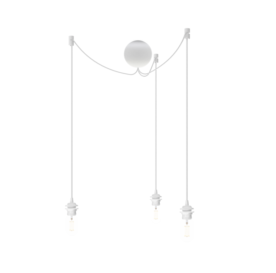 Robustní na pohled, lehký na váhu - to je originální trojitý závěs UMAGE Cannonball ze silikonu. Díky němu stylově zavěsíte libovolné trio svítidel řady UMAGE přesně tak, jak potřebujete. Dostupný v bílé nebo černé barvě. Jedná se pouze o závěs, žárovky a stínítka je potřeba dokoupit samostatně (viz související zboží).